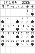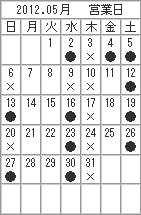 【営業日】水・土・日 ※その他の曜日でも営業する場合があります。下記カレンダーを参考にして下さい。 ※頻繁に変更しているので「更新」で更新して下さい。 |